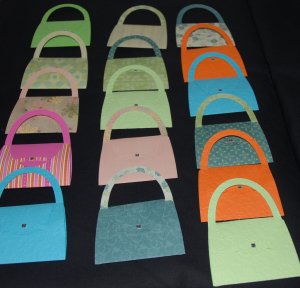 These are Gift Card Holders made from a variety of papers. Some I’ve run through the Cuttlebug and others were two sided so they look like lined handbags.