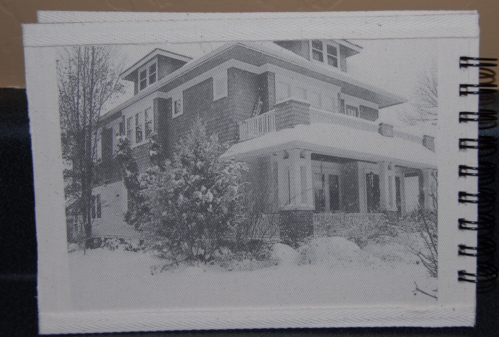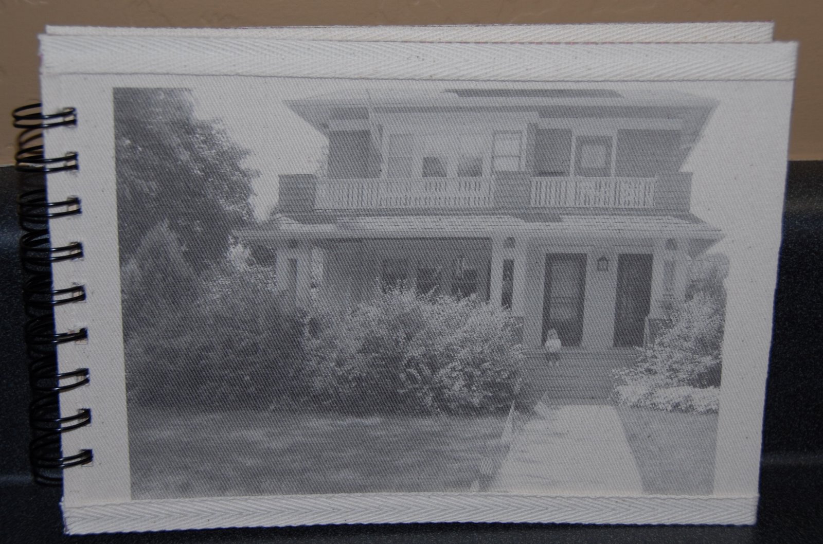 The front cover is a summer picture of my mom’s house. The back cover is from last winter, that my sister took. I printed pictures on CTMH’s Twill StickStock and stuck it to chipboard and then made a journal with my Bind It All.