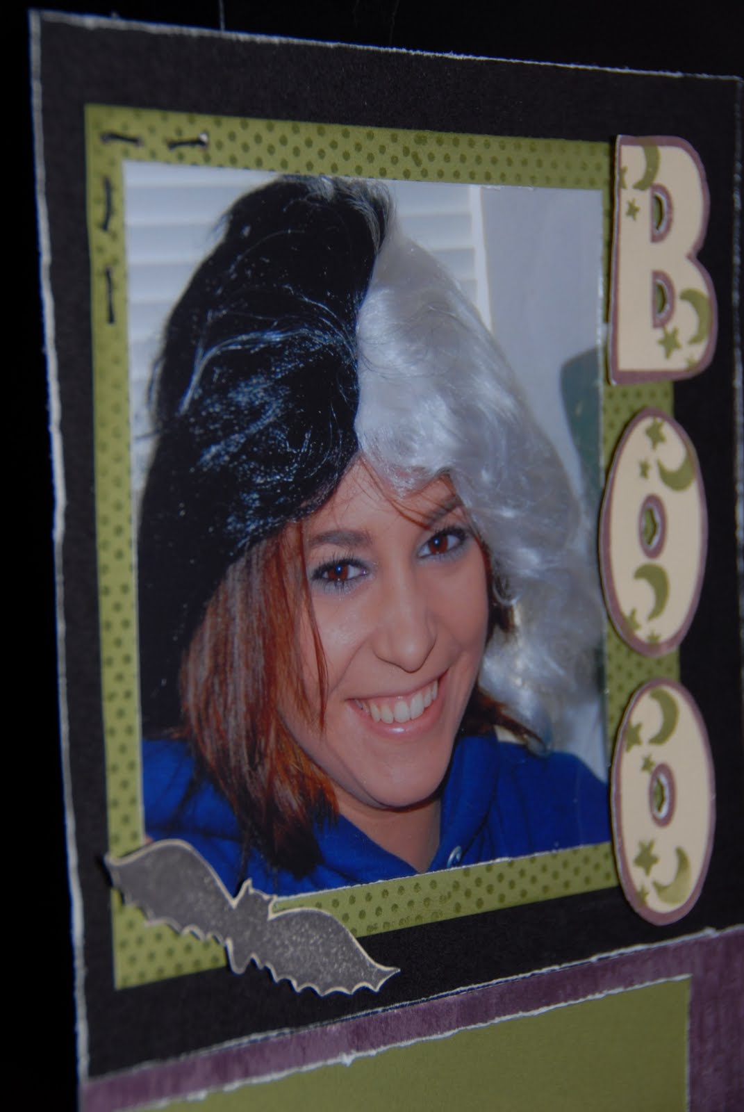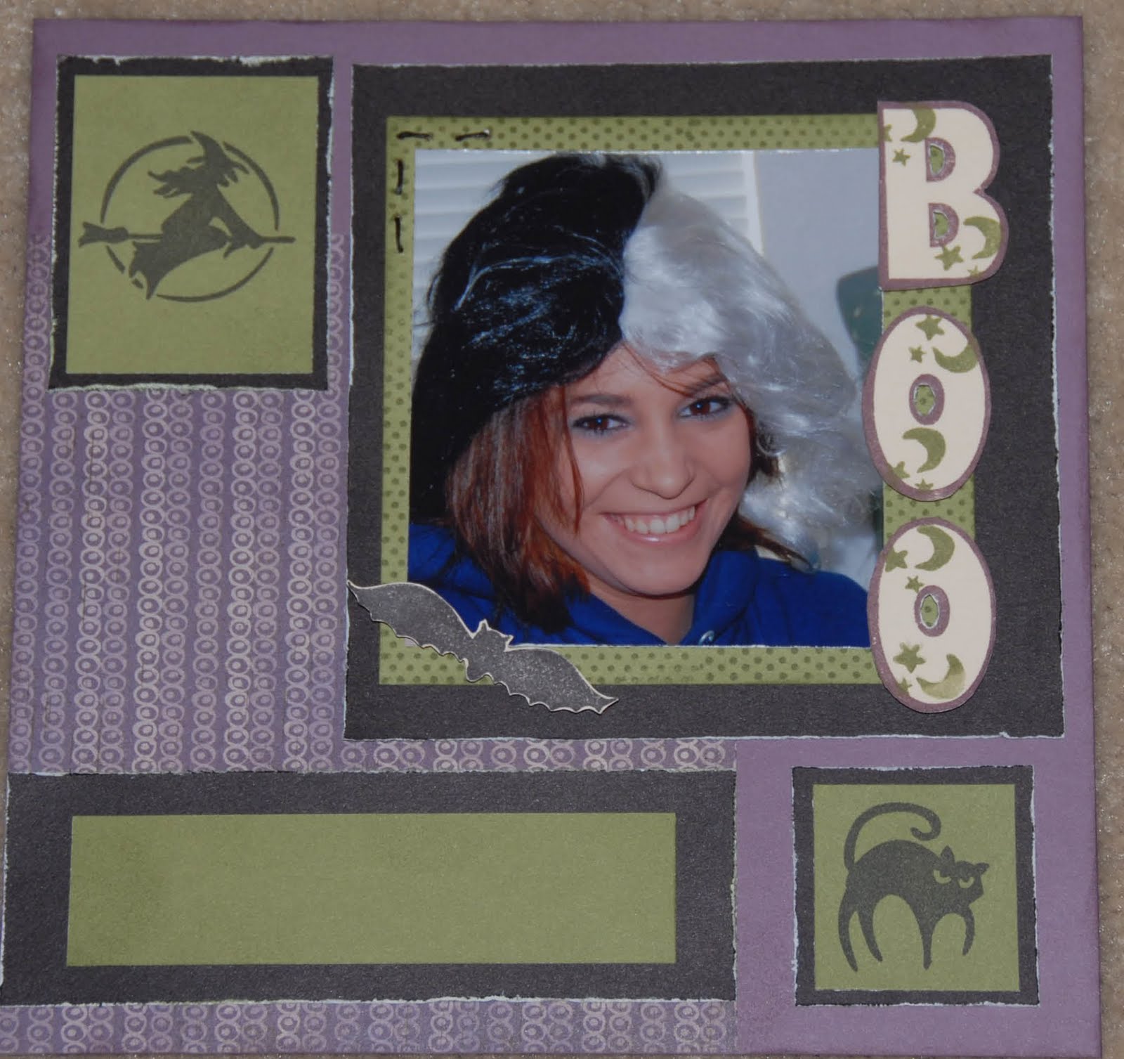 One of my favorite stamping techniques is Random Stamping. I used a stamp from Beware on CTMH’s Posterboard Alphabet stamps. The frame was stamped with a Spot On Background stamp. It is so much fun to be able to make a background paper that fits the project perfectly!