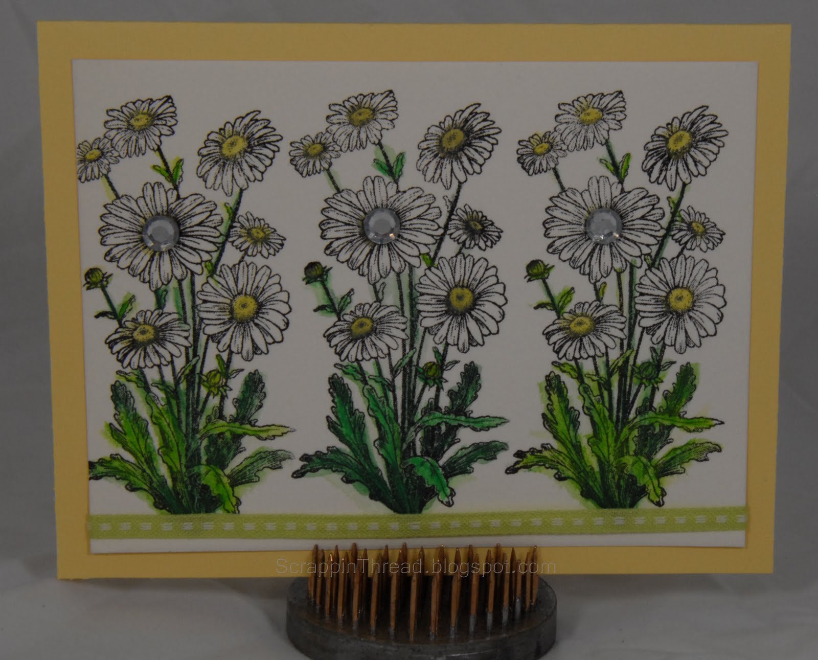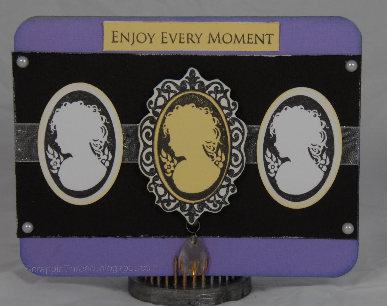 This trio was stamped with Black Archival Ink and then colored with watercolored pencils. The image is from the CTMH Enjoy Every Moment set (C1395). The sentiment from the set is on the card below.