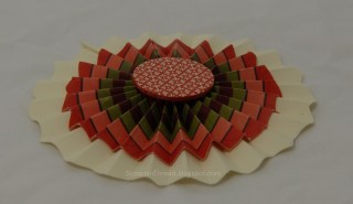 The dimensions of the paper for this rosette are the same as the previous one. It looks like extra layers because a striped paper was used, but there are only two strips.