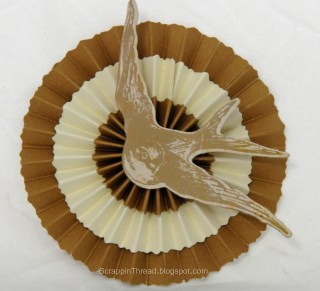 This flower was made with three 12 inch strips of CTMH cardstock. The widths are 1 1/2″, 1″, and 1/2″.