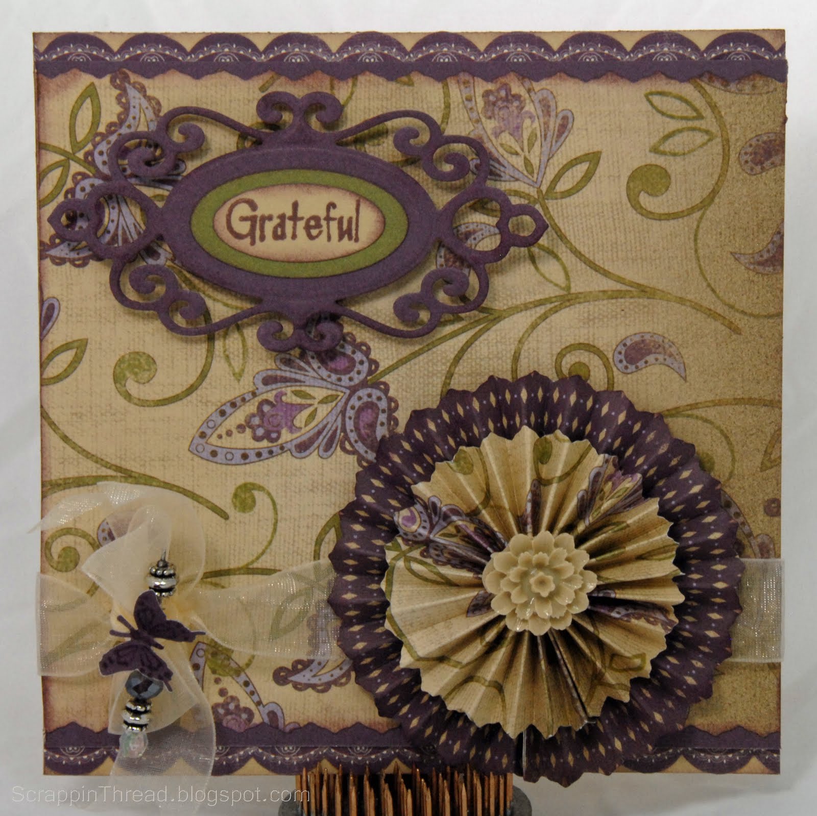 WOW Beverly, this is beautiful!!! I love the papers, so rich looking, and that flower is awesome! Also love the pin with the ribbon and butterfly, such a lovely touch! FAB card!