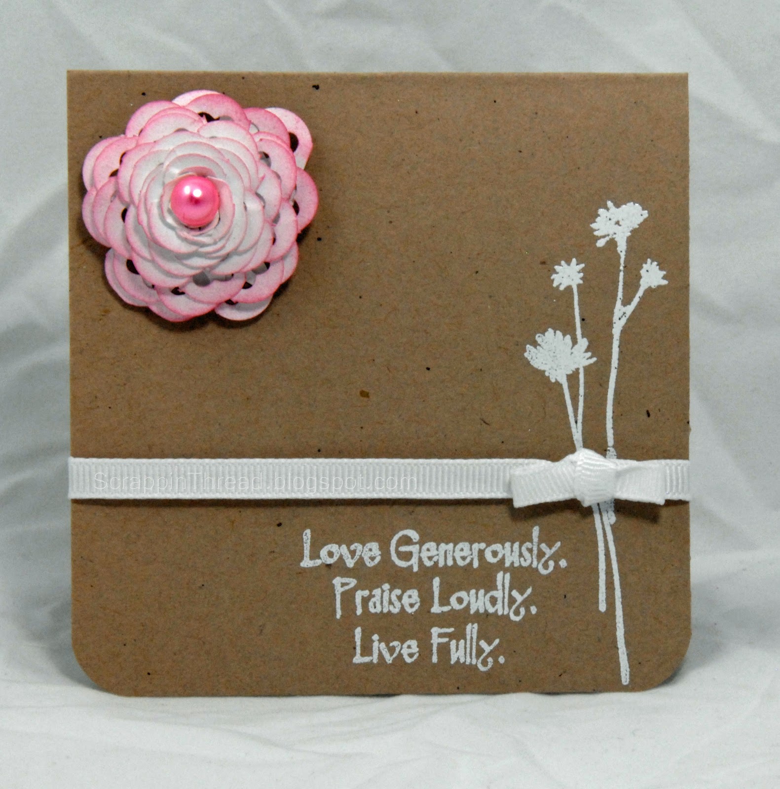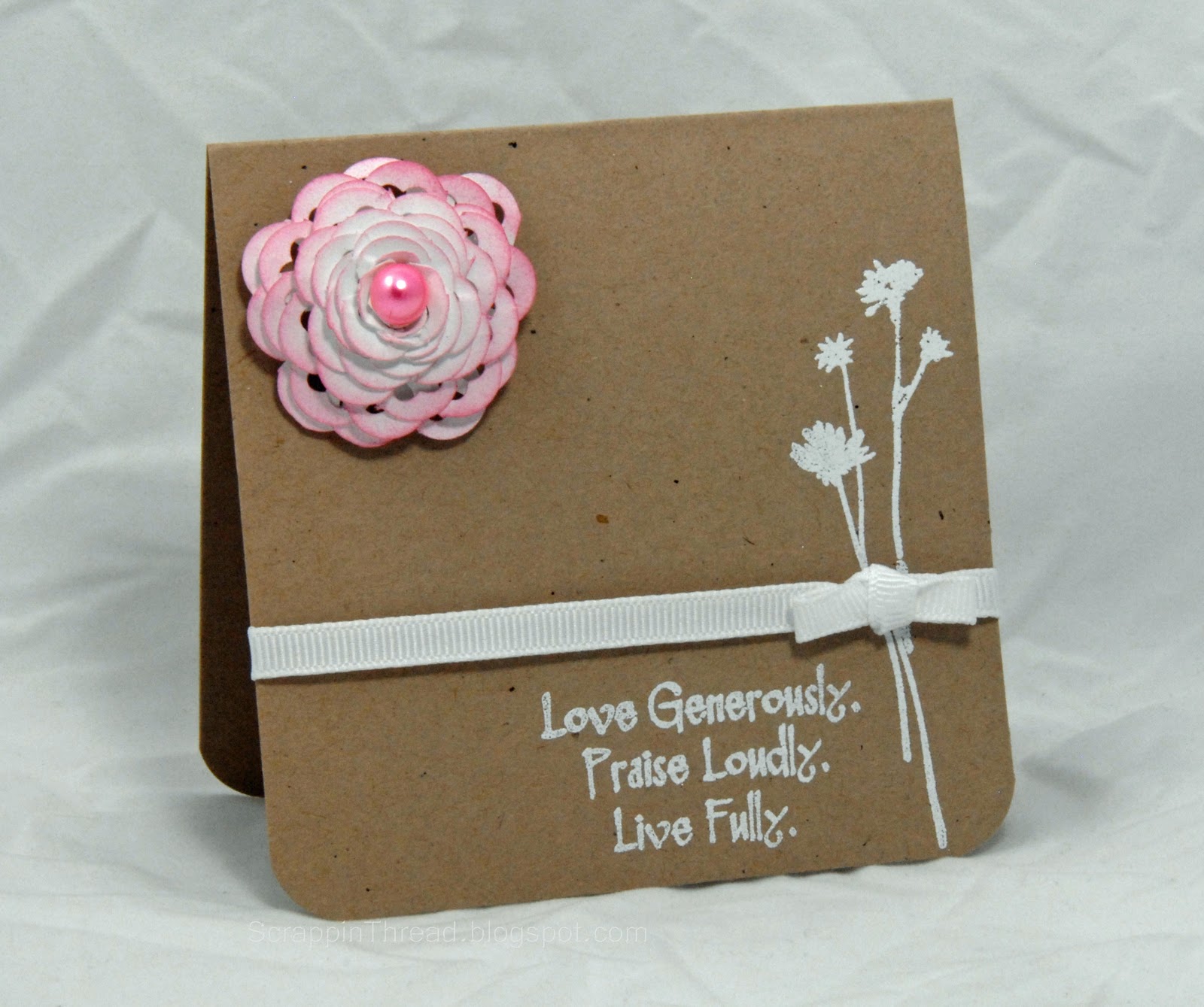 I love the simple, sweet elegance of white on kraft paper. This is one of my favorite stamp sets and I find that I use it a lot! When I saw that CFC #20 was for a mini-card, I knew that I was going to make this card to enter the challenge.