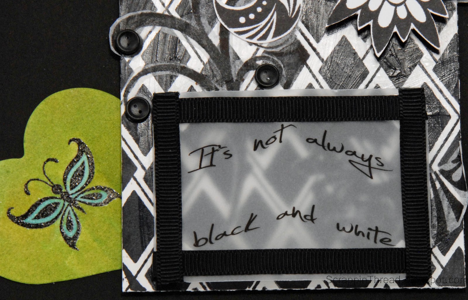 Love your little vellum window and that green heart really POPS against the black and white. Thanks for joining us at Stampotique Designer's Challenge.