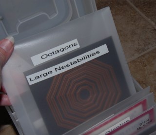 I know that I’ve posted on this before with a video that I made showing how I store my Spellbinders dies. Some people want to see the photos of storage systems instead of watching a video, so I’m posting a few pictures of what I use. If you’d like to see the video, it is in this post from September 10, 2011.