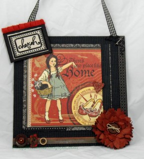 What an adorable project!! I love the Wizard of Oz paper and what you did with it!! Totally love the embellishments:) Your key is perfect in the corner…great job! Sherrie Khttp://sherriescraps.blogspot.com