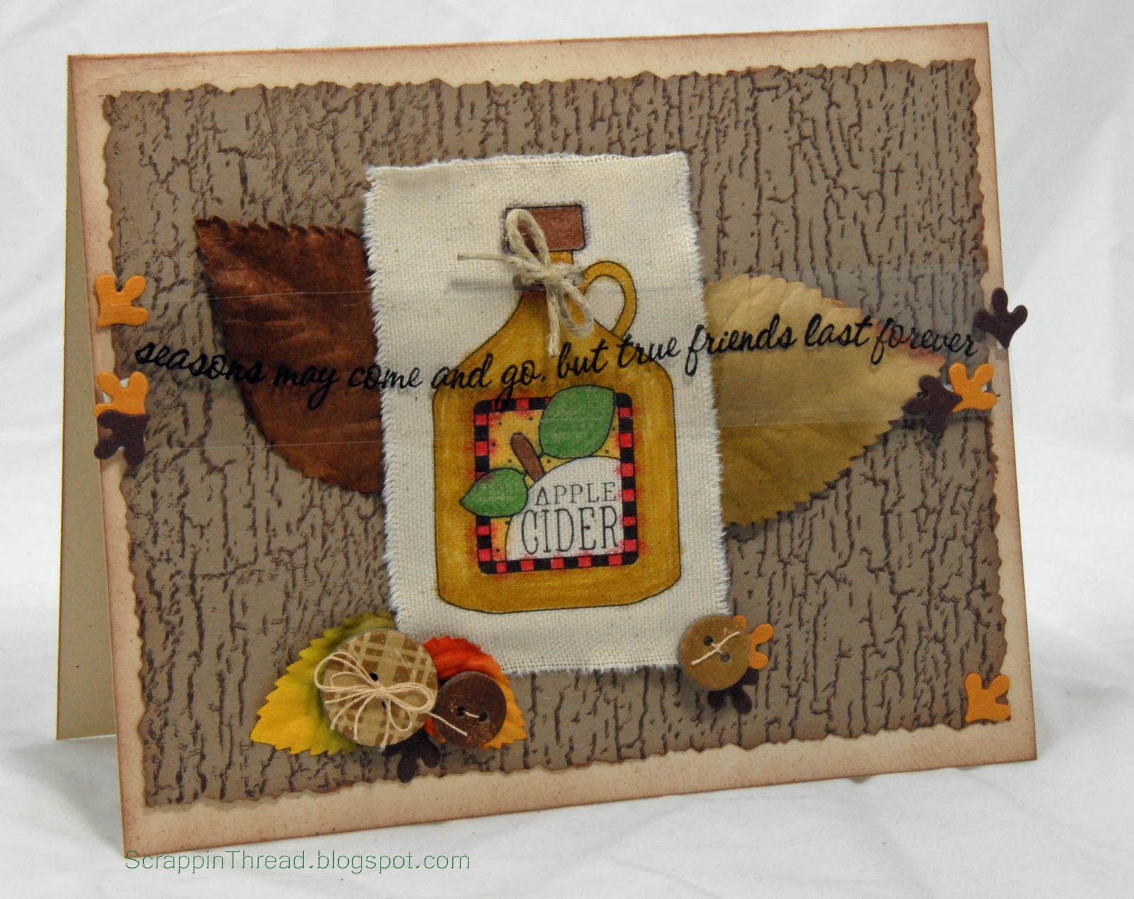 Embellishments: CTMH buttons, Dimensional buttons and Canvas button, SU! Twill Ribbon, Recollections Leaves, twine, thread