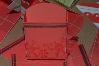 If small enclosure cards are desired, then while the second piece of red cardstock is still loaded 3 – 2” cards can be cut from it after the boxes are done.