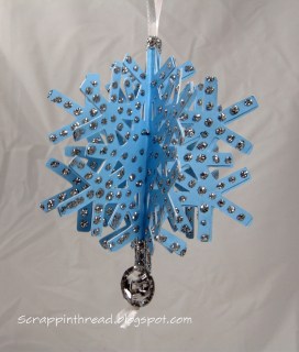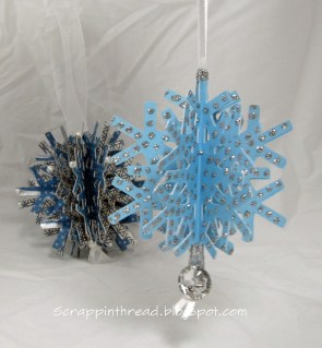 About a month ago I made several different ornaments using scrapbook paper and cardstock. Unfortunately, I forgot all about them when everyone in the family took ill. I recently discovered a few pictures in my camera and realized that I never posted the pictures or the instructions to make them.