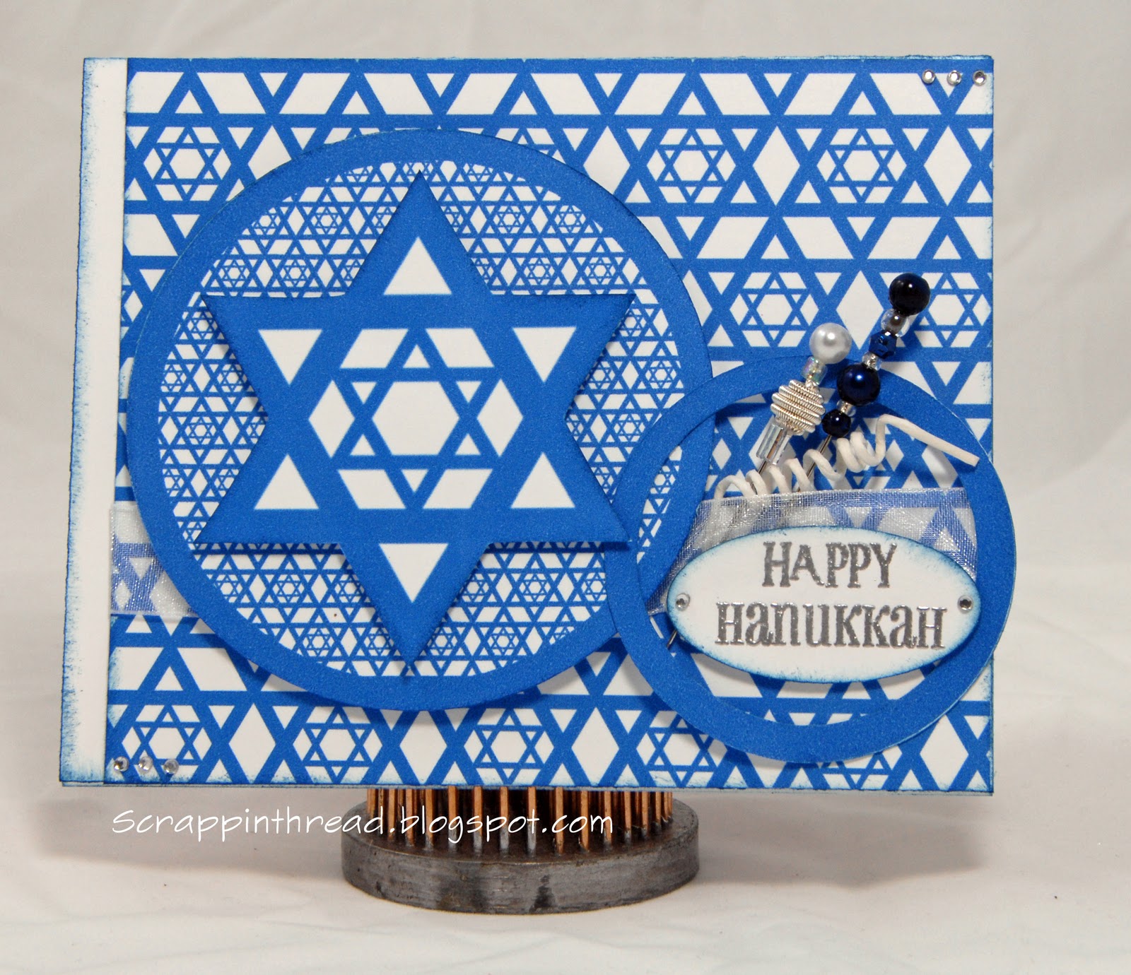 This great sketch from Diana Gonzalez seemed like a perfect one for me to try some new (to me) techniques using the Silhouette Cameo and software. I purchased the Star of David Lace Pattern through the Silhouette store and resized it to make three different background papers. I also captured the blue color and made the two large rings using their free software. It is so awesome to be able to match colors exactly!