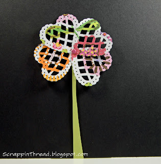 I was working on this card and admiring the beautiful punched shapes when my dd asked if she could borrow the punch. Sure. She started busily working away at her desk with some paper that my sister had given to her. I continued on with my card.