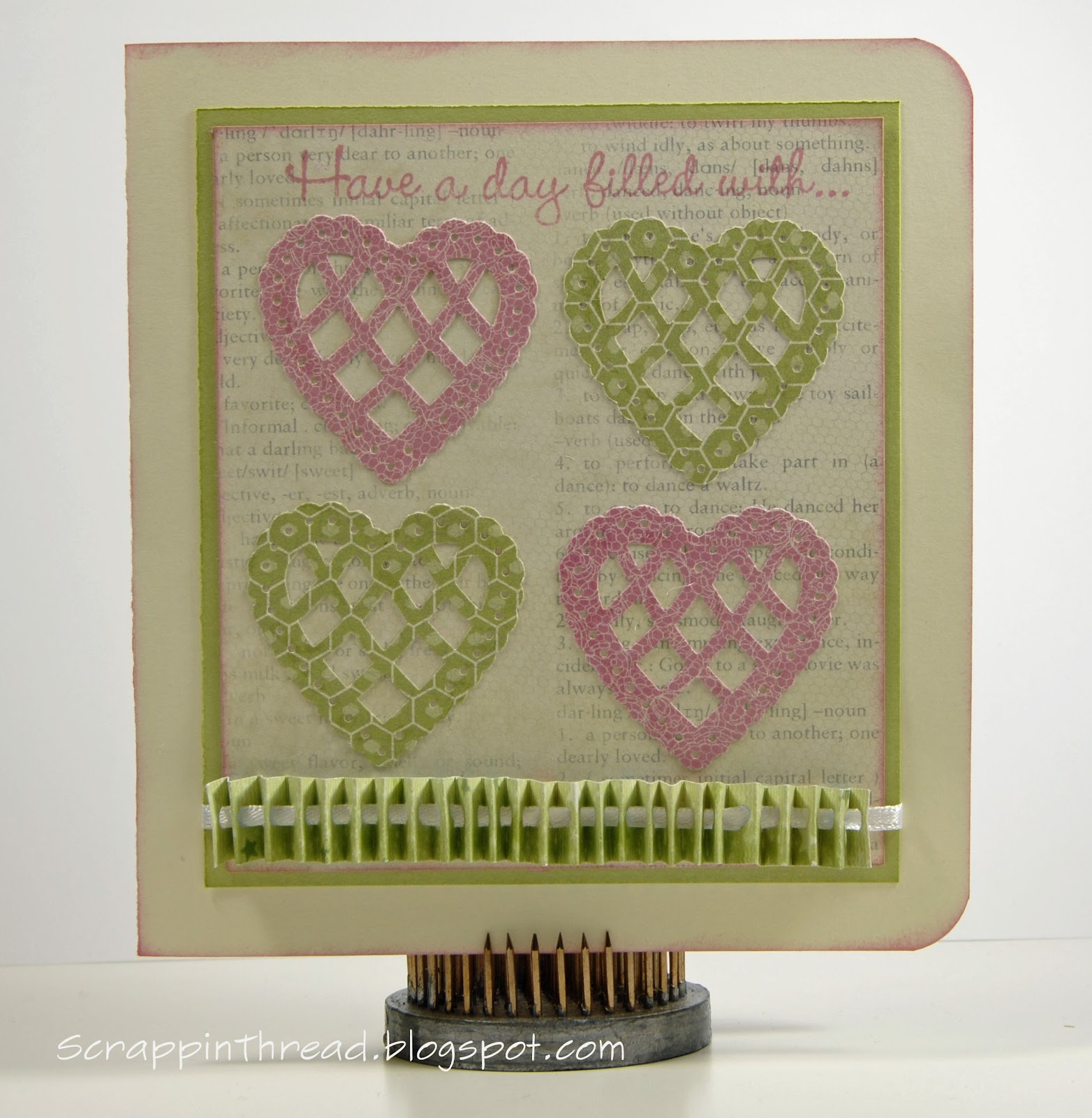 I was working on this card and admiring the beautiful punched shapes when my dd asked if she could borrow the punch. Sure. She started busily working away at her desk with some paper that my sister had given to her. I continued on with my card.