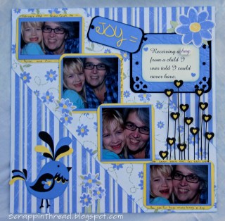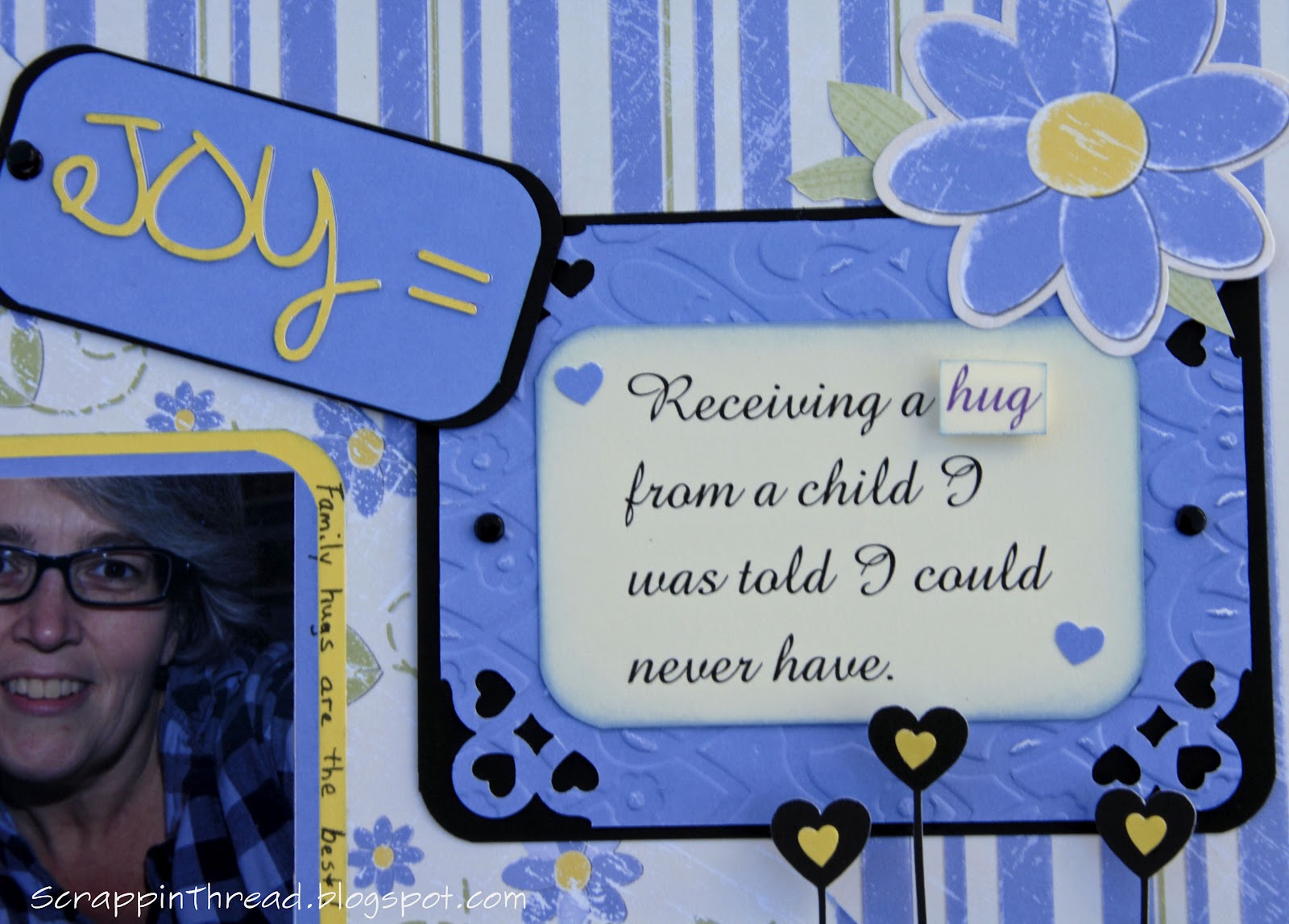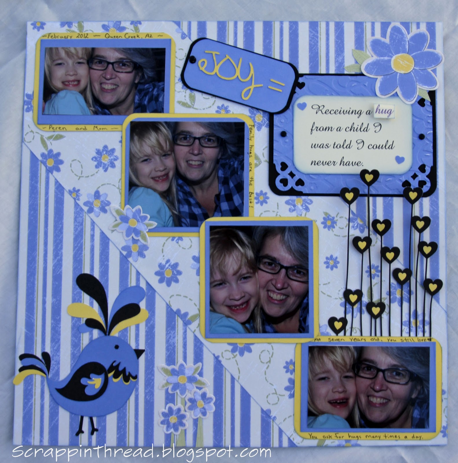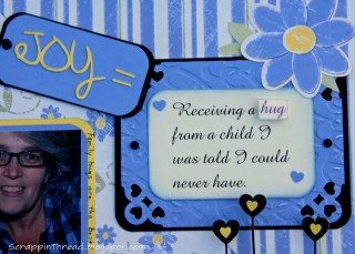 This happy page is all about the special hugs I am fortunate to receive every single day. When there are more than just two of us at home, she asks for a “Family Hug”. The uninitiated may find that a little bit odd, but they soon realize that for dd2, everyone becomes family fairly quickly. She loves group – “Family Hugs”.