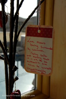 We decorated the “tree” with small heart ornaments and have been adding little love messages and messages of appreciation for the love for which we have been blessed .