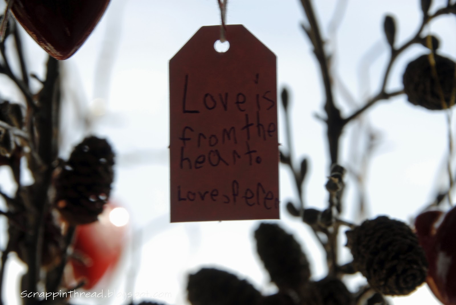 The idea is to celebrate the love in our hearts and in our lives. Quotes, poems, messages from the heart, things we love, anything that makes us think of love has made it onto the tree this month.