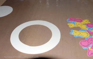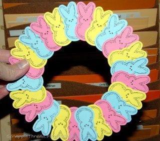 I have never eaten a Peep because I prefer to get my empty calories from chocolate. But, I do think they are very cute. When I saw this stamp set, I knew immediately that I wanted to make the adorable bunny peeps into a wreath. Because it was going to take a lot of peeps to go around even a smallish circle, I decided to try to figure out how to cut the shape with my Silhouette Cameo. It was easy! The free software that comes with the machine is very intuitive to figure out. I haven’t had time to read the manual, yet I still managed to get a shape that fit the stamped image very well, even if I say so myself. Lol.