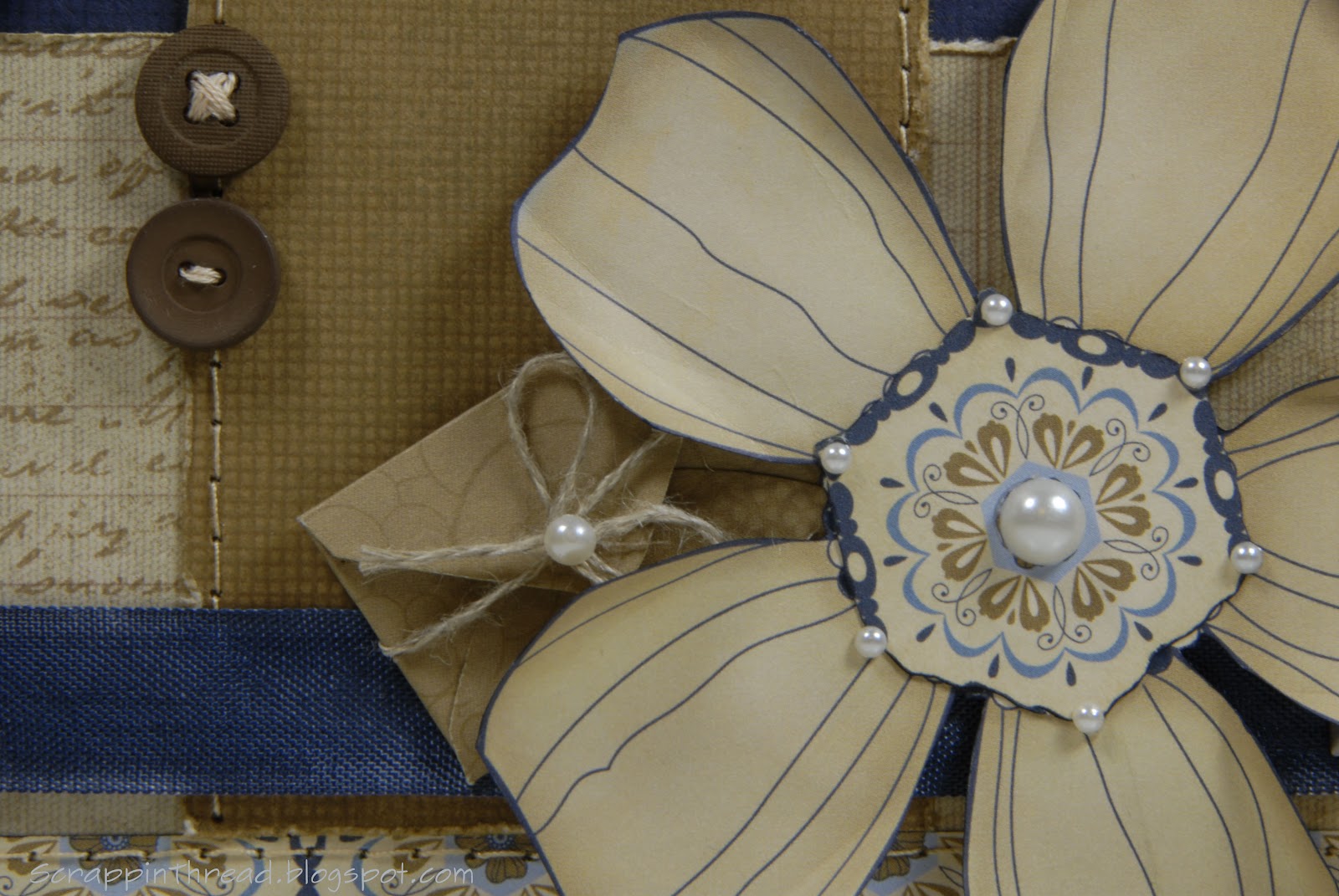 Embellishments: Opaques Pearl Adhesive Gems, Durables Square Studs, Basic Assortment Buttons, Valdani thread, SU! linen thread