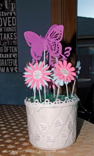 So at this point you may be wondering what is with the flower pot and the paper flowers? Once I decided to organize my stamps, the idea snowballed into organizing all of my scrapbooking/stamping supplies. Again.