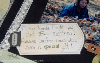 One of my sisters helped me complete college by watching my dd1 on the weekends. I worked full-time, went to school full-time and was a single parent. I didn’t have time for fun. This was about twenty years ago. I now have some time for fun, so I am finally scrapbooking a photo from that era.