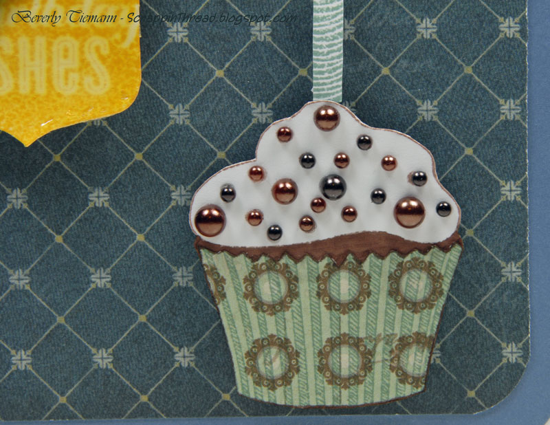 Even though there is a cupcake cut file on the Artiste cartridge, I hand cut it because I wanted to paper-piece it. The ‘sprinkles’ on the cupcake are Mocha Opaques Adhesive Gems.