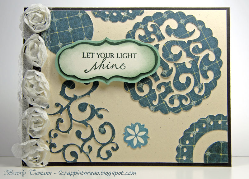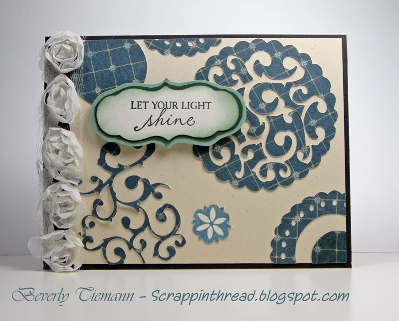 The clean up continues! There were several different diecuts leftover from when I was playing with the Artiste Cricut cartridge. These were all made with the Avonlea paper, which is too pretty to throw away! So they made it onto this simple, mailable card.