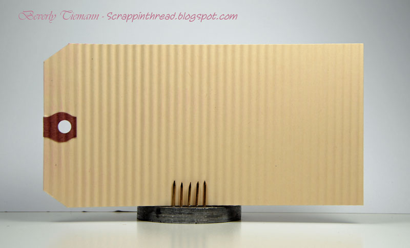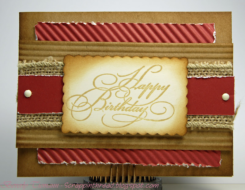This card was made by using a Fiskars crimper horizontally on a piece of kraft cardstock and a piece of Ruby cardstock running diagonally.  The base is also CTMH kraft cardstock.