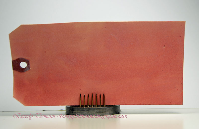 The tags are regular manilla painted with Tattered Angels Tutti Fruiti Glimmer Mist. After they dried I ran them through the printer and added washi/tissue tape to both ends.