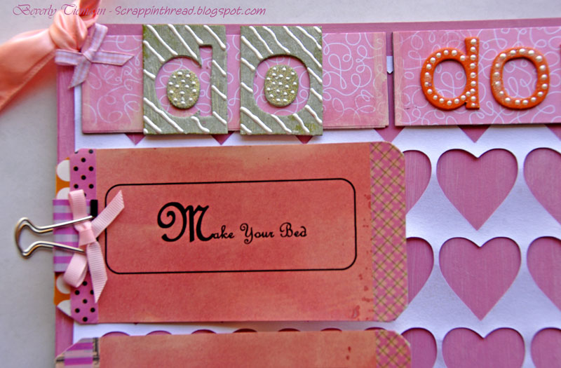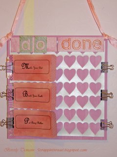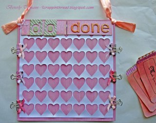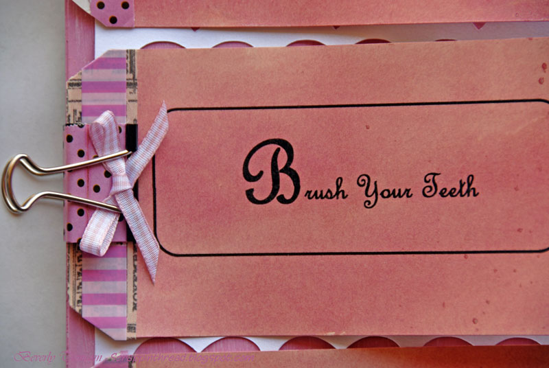 For the challenge, I knew I wanted to use shipping tags and binder clips. I also knew that I was becoming weary of reminding my dd every single day to do some simple things. It seemed a Reminder Chart was in order.