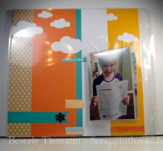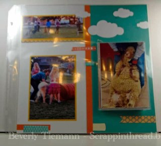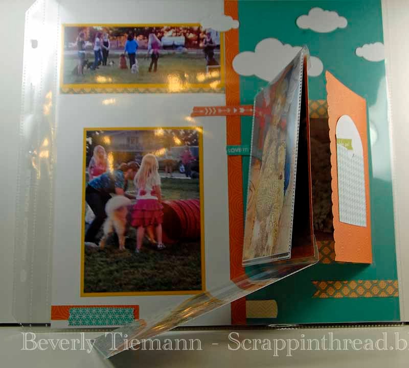 The still photos of the layout have terrible glares/blurriness because of the page protectors.  However, I wanted to share them to show the little booklets that I made by just folding a piece of patterned paper into thirds.  These booklets are the bases for most of the photos and also provide a fun interactive element to the layout.