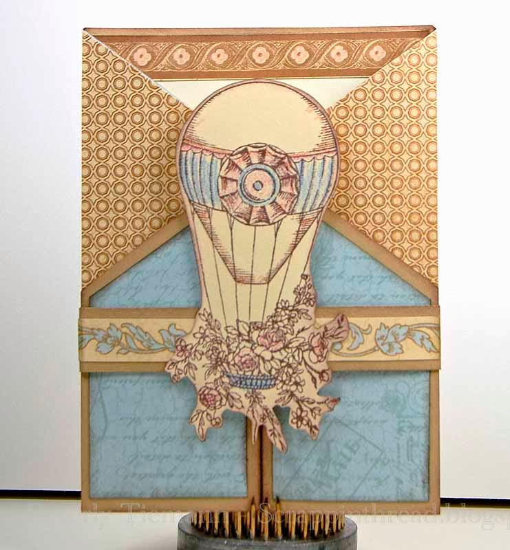 The stamped image above is also used as part of the belly band for the card below.  It is part of the Give a Lift CTMH set. The inside section is 4″ wide.  Each of the two flaps on both sides are scored and each section is 2″ wide.