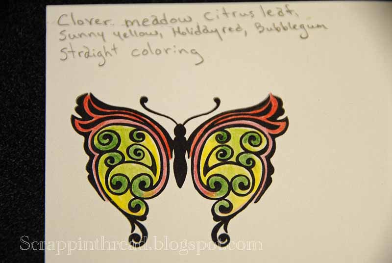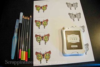- Stamped image heat embossed with Versamark ink and embossing powder, then colored