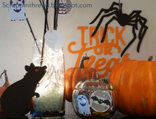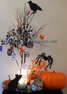The plan is that my daughter will choose either an activity (Trick?) or a candy Treat each of the first 30 days of October. If she chooses an activity, then we will take the diecut (which sort of looks like an ornament) and hang it on our old Thanksgiving Tree. Which, I guess, is now a Halloween Tree. Kind of a two-for-one decorating scheme. If you’d like more information about it, the Thanksgiving Tree post from several years ago is here.