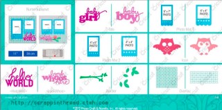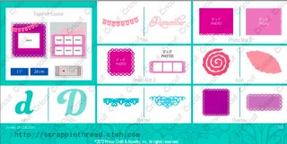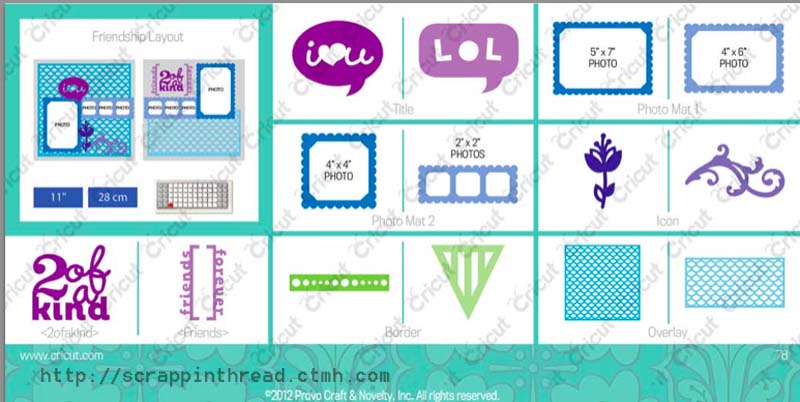 Here are a couple of images from CTMH of the contents of the new collection and some artwork made with the new cartridge.