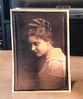 I scanned Grandma and printed out several copies of her onto cardstock made for printers. Our scanner/ copier is a laser printer. I used Hammermill 80lb cover weight paper purchased from Costco.com. There are many options when it comes to printing photographs. Because this picture was going to be altered with a glaze medium, I wanted a smooth surface that would not bleed. If you do not have access to a laser printer, you can take a copy of your picture to a copy center and have it printed there. Or, if you do not intend to put anything moist on the printout, it won’t smear and become a big mess!