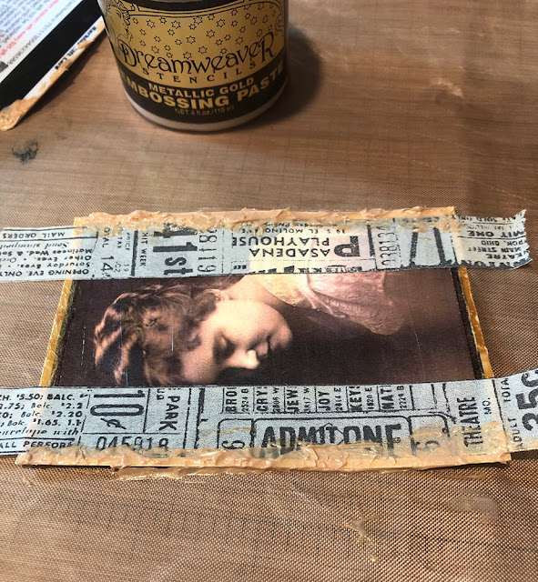 | Embossing paste dries a pretty antique gold color |