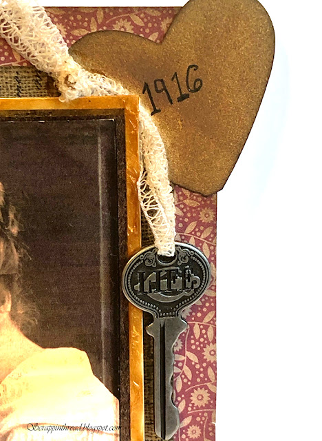 The heart shape took on a leather-like look after distressed with ink. The lace ribbon was also inked a little bit to tone down the harshness of the white.