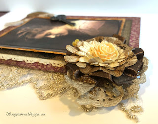 Below is the side view of the big flower embellishment. There are also two different types of lace ribbon layered with the patterned paper.