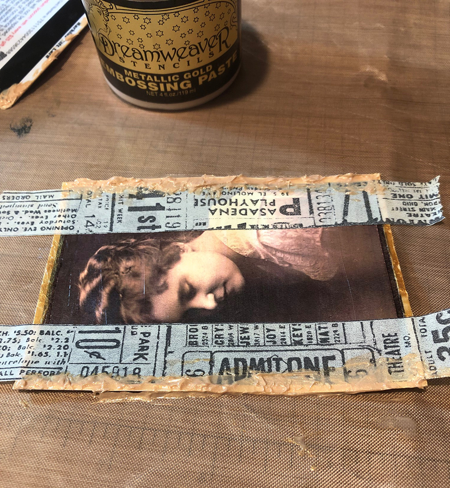 | Embossing paste used to frame photograph |