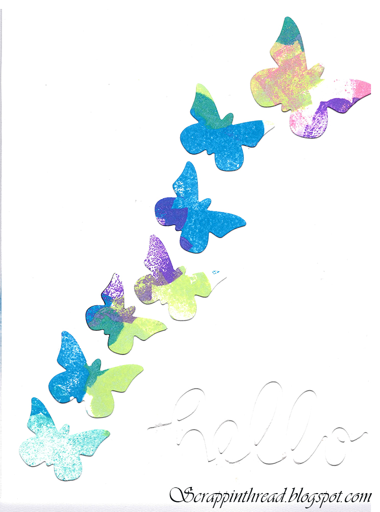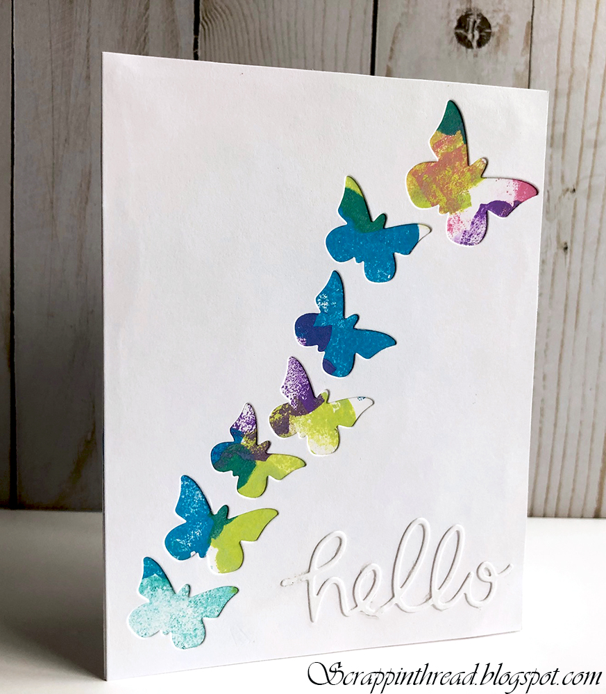 The “Hello” die is from A Muse Studio. The Butterfly die is from Memory Box. I believe it is retired.