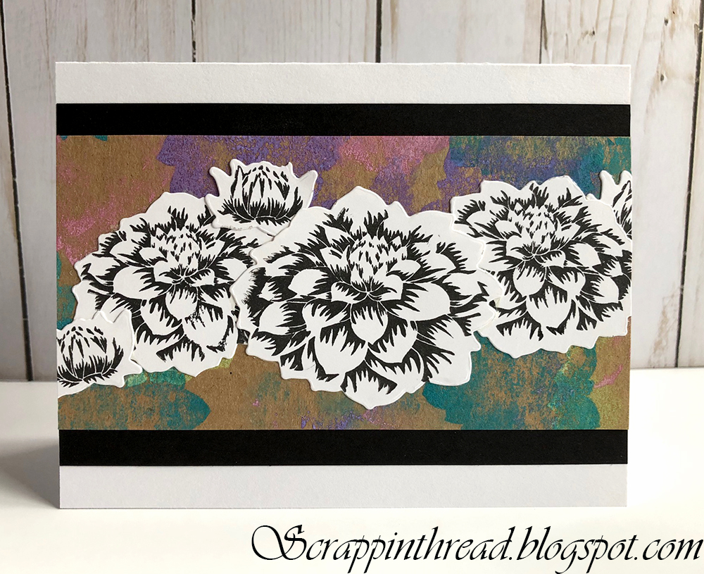 | Altenew Dahlia Blossoms stamped on Distress Oxide background |