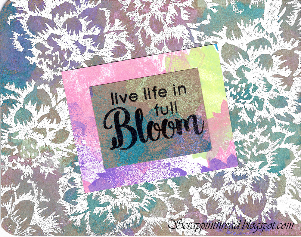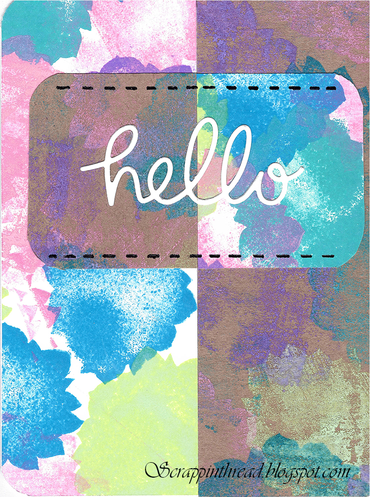 It all started when I was making swatches for some Distress Oxide inks. I was curious about using a solid stamp on kraft and white cardstock. It is fun to compare the different ways that paper takes color and water. These backgrounds were made on one 12 x12 kraft and one 8 1/2 x 11 white piece with six different colors of Distress Oxide inks. Any kind of solid stamp would work. I used one from one of the Altenew flower sets. Stamping gives a different effect than applying the ink pad directly to paper. This is a more abstract, softer look. Which in turn made pretty cards.