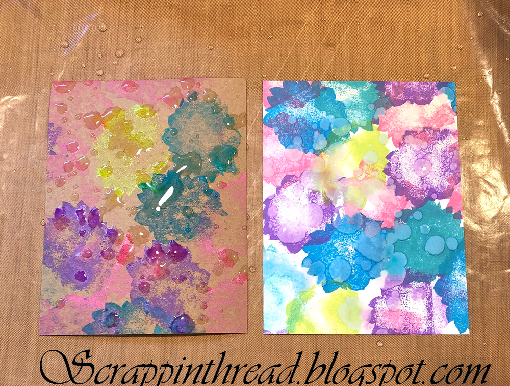 | Distress Oxide Stamped on Kraft and White Cardstock with Water Splatters |