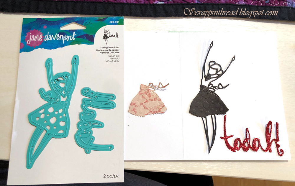 The next card is super simple to make. I am showing the individual pieces before they’ve been assembled. It was very easy to cut out the skirt and layer it.