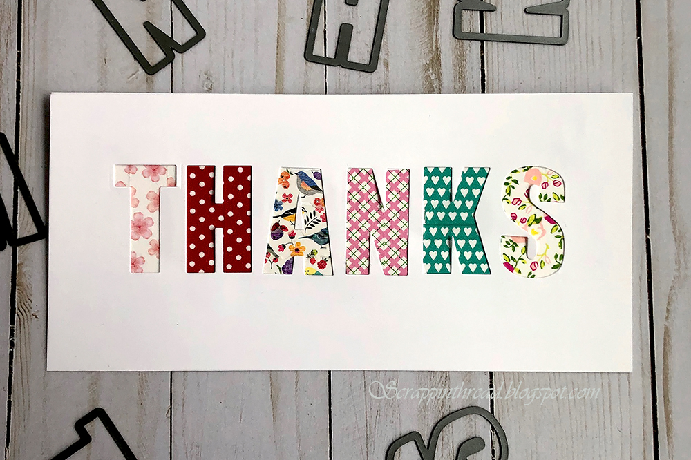 And because making cards with die-cuts is so fast and easy, the card at the top of the post is sort of a bonus card. It was made using powdered watercolor pigment on watercolor paper. Pouring the powder onto wet paper is a fun and easy way to make a watercolor background. The strips around the “THANKS” are leftovers from a scrapbook page posted here.