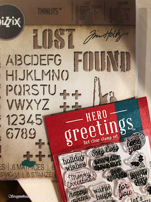 | Tim Holtz Sizzix die for numbers and Christmas Greetings Stamps from Hero Arts |