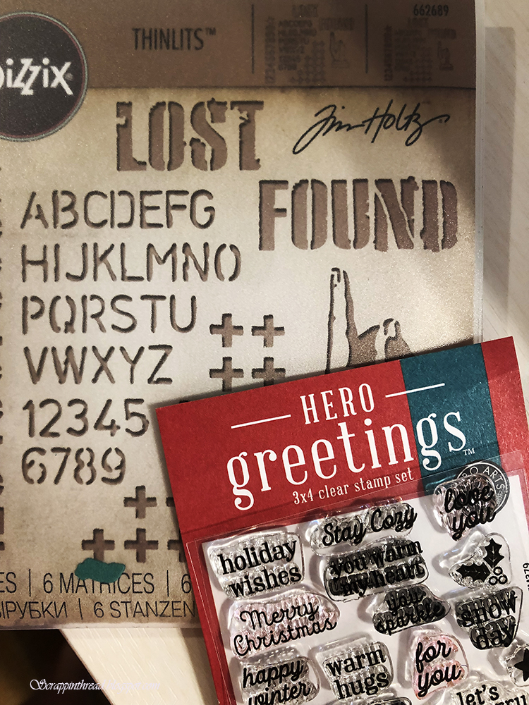 | Tim Holtz Sizzix die for numbers and Christmas Greetings Stamps from Hero Arts |