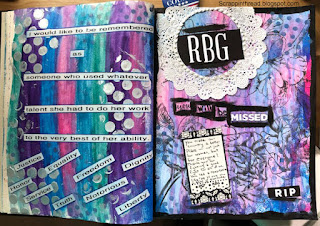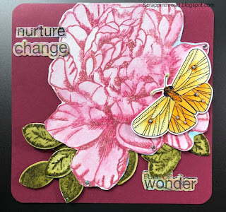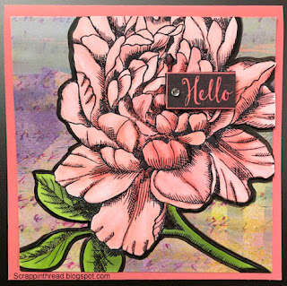 The art journal page on the right-hand side has the peony stamped on it several times. Both projects used Tuxedo Black Memento ink.