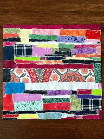 There are times when I just want to sit at my sewing machine and mindlessly run the fabric under the presser foot. I do not want to have to think too hard about what I am making. Nor do I want to pay attention to a technique that is more challenging than a straight stitch on a straight seam! This does not happen frequently, but when it does I like to use up scraps of fabric and make “new” fabric by sewing small pieces together. And then, of course, I usually cut them up again to make a quilt or maybe even potholders.